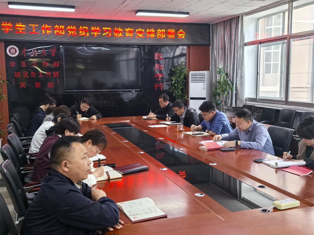 为深入学习贯彻习近平总书记关于党纪学习教育的重要讲话和重要指示精神,进一步将《中国共产党纪律处分条例》(以下简称条例)学深学透学到位,按照校党委部署安排,学生工作部(研究生工作部、武装部)党支部于4月24日召开党纪学习教育动员部署会。支部全体党员参加会,会议由党支部书记顾宁主持。